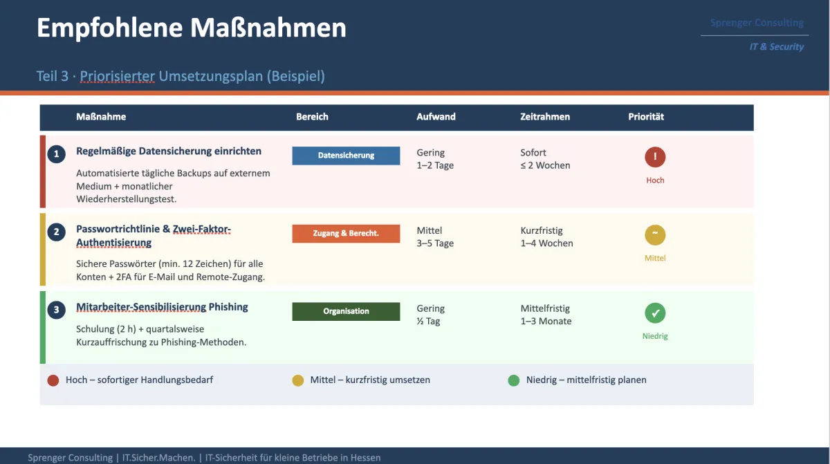 TOP-3-Maßnahmenliste (sofort umsetzbar)