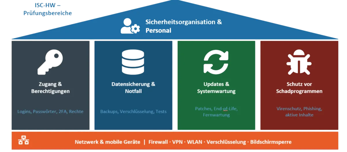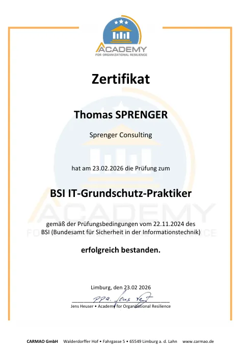 Mein „IT-Sicherheits-Check“ basiert direkt auf dem bewährten BSI IT-Grundschutz – und wächst mit Ihrem Betrieb: vom ersten Check bis zur ISO 27001-Zertifizierung. Vergleichbare Angebote wie der BSI CyberRisiko-Check bieten diesen Wachstumspfad nicht.